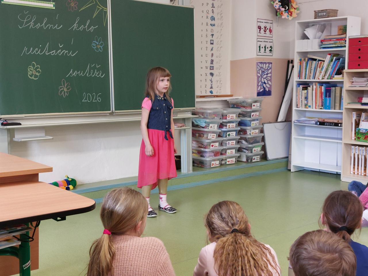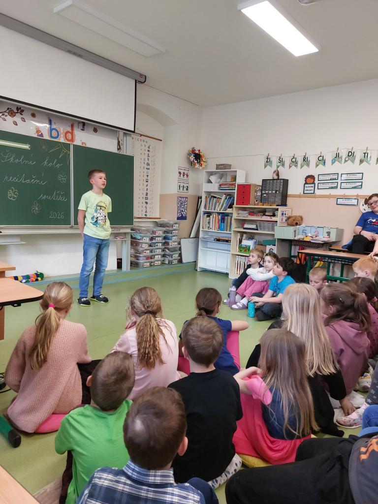 V naší škole proběhlo 25. 3. 2026 školní kolo recitační soutěže. Žáci soutěžili v pěti